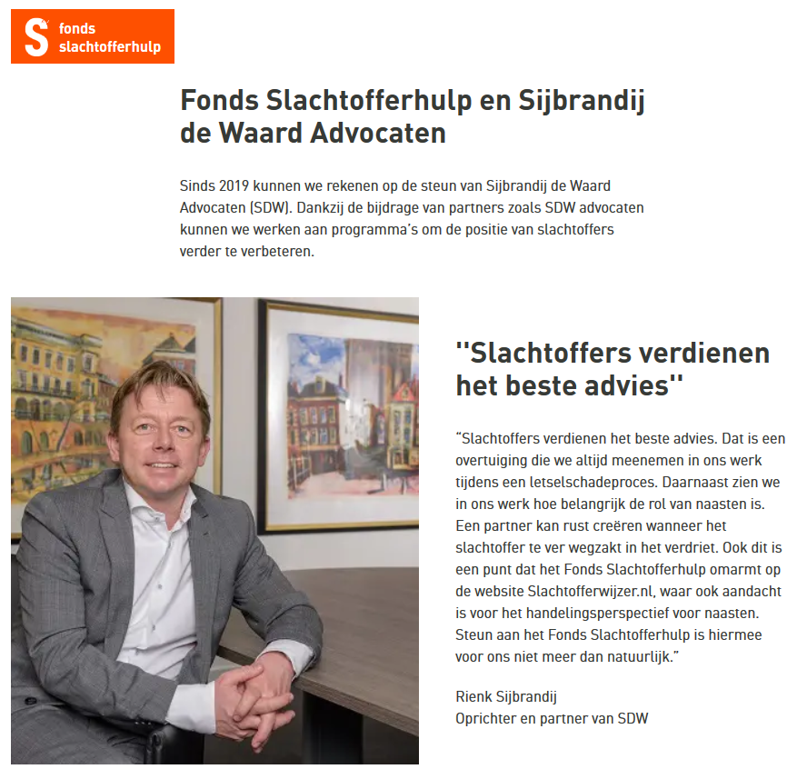 SDW advocaten is gevestigd in Utrecht en levert landelijk rechtshulp aan mensen met letselschade. Website: SDWadvocaten.nl